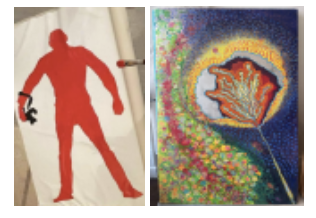 Color as Antidote: le corps face à la chimie, série picturale qui traite en grand format de l’intrusion médicale dans le cours de la vie. La joie créative, figurée par un pointillisme aux pastels pétillants, symbolise l’énergie vitale salvatrice. Le grand format était une évidence pour explorer l’intime face à l’ampleur de la confrontation….et reproduire ces extraits de figures ange-gardien à taille réelle…